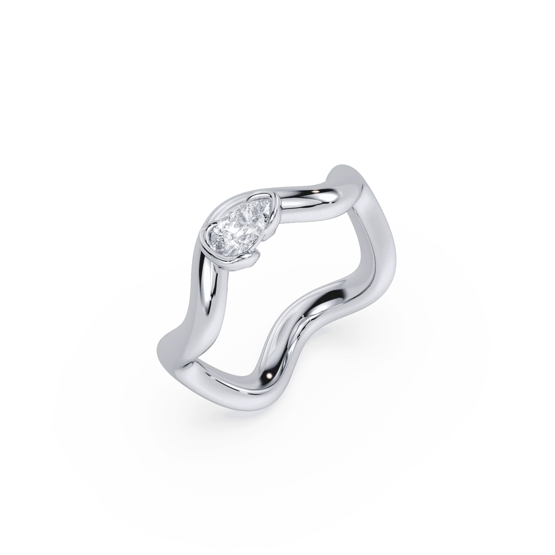 Crafted in luxurious 925 Sterling Silver, showcases 1 pear lab diamond in a chunky half-bezel setting on a scalloped comfort fit band.Â