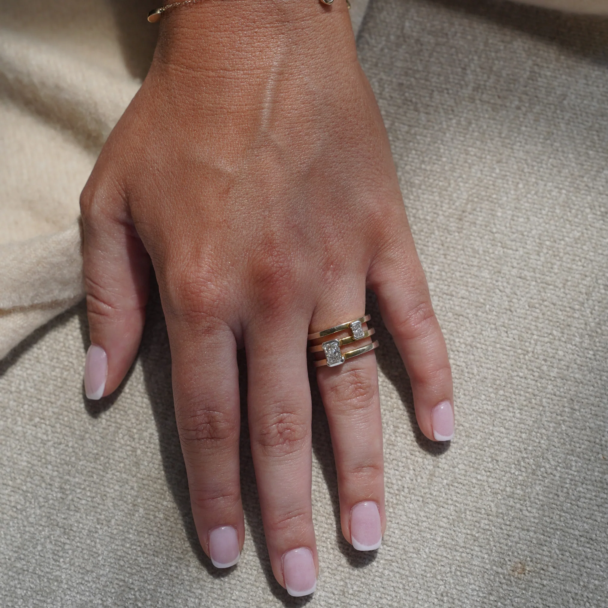 The Portrait Toi et Moi Ring is all about balance—between sentiment and statement, scale and comfort. Two radiant-cut lab-grown diamonds, set in our signature half-bezel, sit slightly apart in an open silhouette that creates a wide, bold spread without ever feeling bulky.